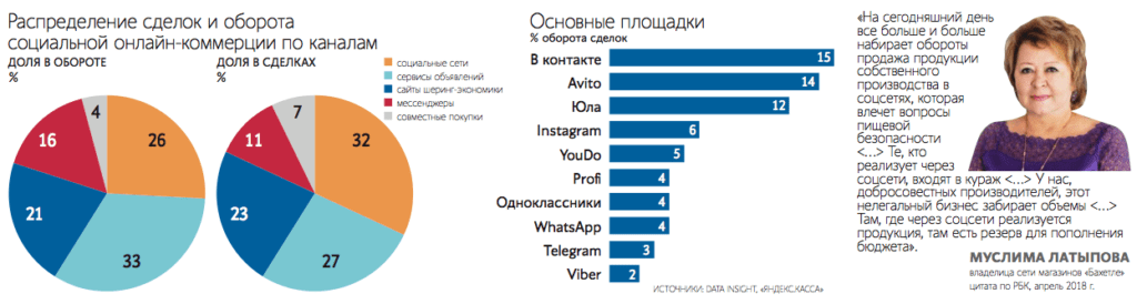 Также не менее важно отметить рост продаж через социальные сети - многие теперь не видят смысла вкладывать деньги в собственный сайт: можно продвигать товар через социальные сети, связываться с клиентом с помощью мессенджеров и принимать деньги на карту.